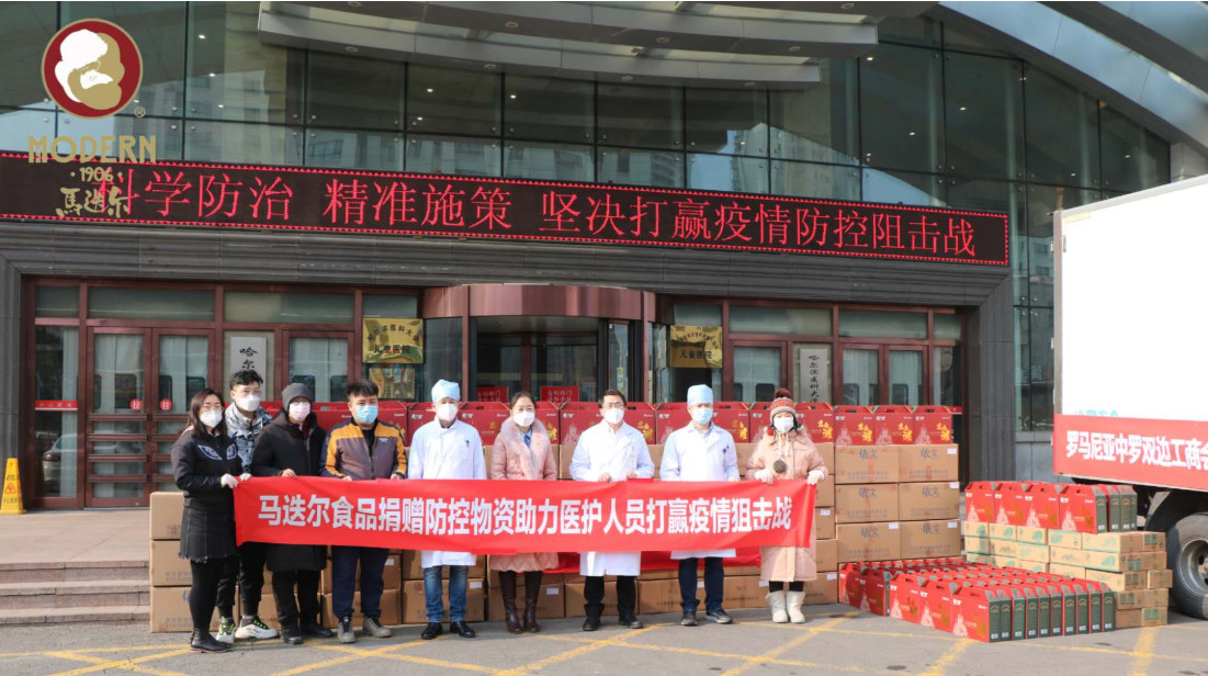在疫情防控吃紧阶段,马迭尔食品向松北区疫情防控指挥部、哈医大群力院区捐赠抗疫物资。