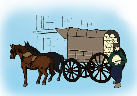 将冻好的奶坨从距离哈尔滨100多里以外的卧里屯牧场运回,置于冰窖以备夏季食用。